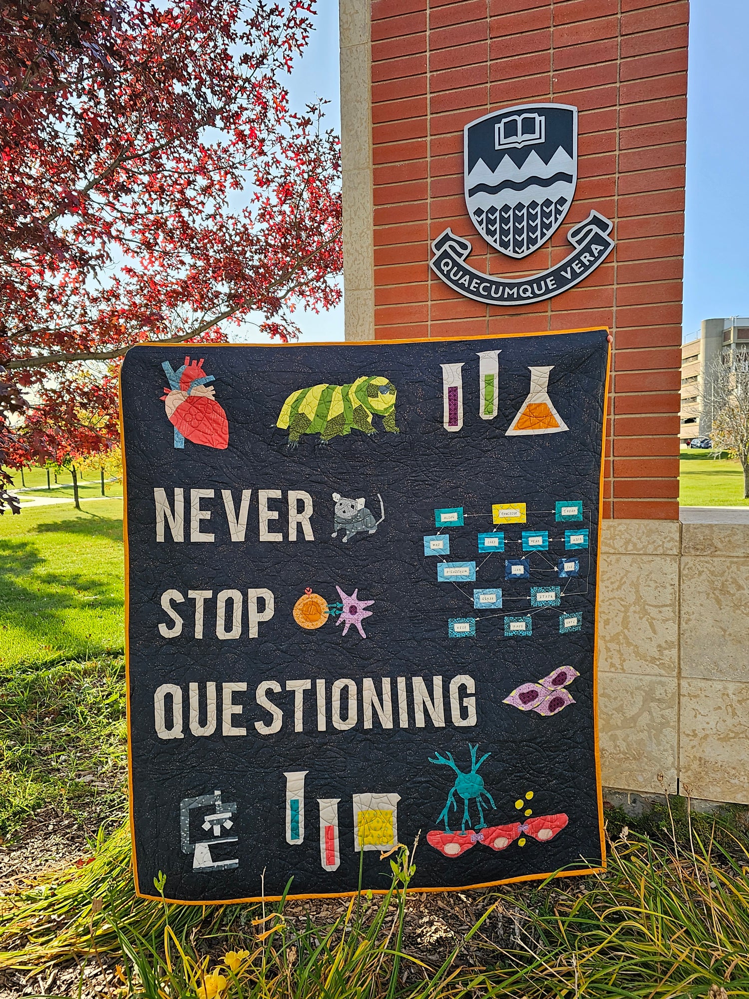 I have worked in the science field for over 30 years and have always used quilting and sewing as a creative outlet. I have recently incorporated scientific elements into my quilting journey by designing patterns that showcase equipment and tools that I use in the lab on a daily basis. I hope to bring my customers on a journey with me to explore the science behind colour, quilting and creativity.